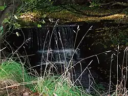 The Rye Water has its source among the nearby high hills. The most interesting spot is that about which the world has been singing for centuries - the spot where it was crossed by a ford below Ryefield House. Before the erection of any bridge at Drakemire, the fording of the stream had occasioned much fun and banter, as shown by the many traditionary verses of the light and beautiful song "Comin' Thro' the Rye" that commemorates the primitive scene:[4][5]-