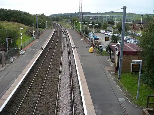 With the closure of both the Kilmarnock & North Johnstone lines to passenger traffic in 1966[4] and to all other traffic in 1973 (Kilmarnock line) & 1977 (North Johnstone Loop),[5] having four lines through the station became superfluous, so the station platforms were remodelled during the line's electrification in the 1980s back to two side platforms.[6] The Ayrshire Coast Line was electrified by British Rail.