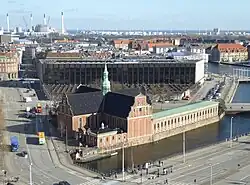 The National Bank building viewed from Christiansborg Palace, with Holmen Church in foreground