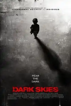Dark Skies is a 2013 American science fiction horror film written and directed by Scott Stewart, produced by Jason Blum under his Blumhouse Productions banner, and starring Keri Russell, Josh Hamilton, Dakota Goyo and J. K. Simmons.[5][6]