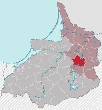 The Darkehmen district (from 1938: Angerapp district) was a Prussian district in East Prussia from 1818 to 1945. Its former territory is now divided between the Warmian-Masurian Voivodeship of Poland and the Kaliningrad Oblast of Russia.
