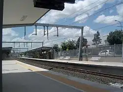 Darra railway station provides access to regular Queensland Rail City network services to Brisbane CBD, Ipswich, Rosewood and Springfield. When the railway was completed in 1876 "with a stop at nine mile eighty four chain gate", halfway between the planned Oxley railway station and Wacol railway station, the site was set for the future Darra. The station was once the terminus for the first of Brisbane's electric rail lines, linked to Ferny Grove railway station in 1979.[6]