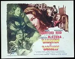 Daughter of Darkness is a 1948 British Gothic horror film directed by Lance Comfort and starring Anne Crawford, Maxwell Reed and Siobhán McKenna.[2] Released in January 1948, it was based on the 1938 play They Walk Alone by Max Catto.[3] It was shot at Riverside Studios, Hammersmith, London, (known at that time as Alliance Studios) and on location.[4][5] McKenna was offered a Hollywood contract following her memorable performance, but heeded the counsel of Laurence Olivier to remain in theatre work.[6]