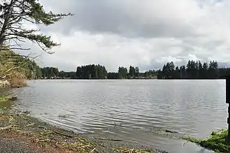 Deep Lake is a 66-acre (27 ha) body of water lying eight miles (13 km) south of Olympia in Thurston County, Washington. It is 17 feet (5.2 m) deep at its deepest point and has a water volume of 771 acre-feet (951,000 m3).[3] The lake drains into Black River by way of Beaver Creek and Scott Lake.[4] Deep Lake is located in Section 3, Township 16N, Range 2W, Willamette.[3] The lake is bordered on two sides by Millersylvania State Park. An RV resort camp occupies the lake's eastern shore.[5] The lake's fish population includes stocked rainbow trout and naturally reproducing largemouth bass, bluegill, yellow perch, and pumpkinseed.[2]