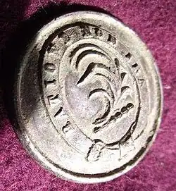 The Small family motto is "Ratione non ira", which translates to "Do not anger".[8] The Small family crest is branch of palm, properly erect.[7] A gold button bearing an erect palm surrounded by the Small family motto was recently dug up in a garden plot on the Dirnanean estate.