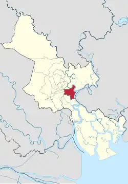 District 7 (Quận 7) is an urban district of Ho Chi Minh City, the largest city in Vietnam. As of 2024, the district had a population of 456,789 and an area of 36 km².[1]