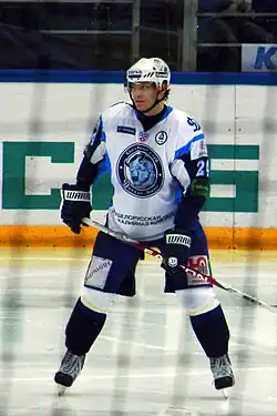 Dmitri Nikolaievich Korobov[1] (Belarusian: Дзмітрый Мікалаевіч Корабаў; born 12 March 1989), is a Belarusian professional ice hockey defenceman for HC Dinamo Minsk of the Kontinental Hockey League (KHL).