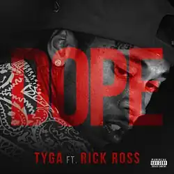 "Dope" is a song by American rapper Tyga with a guest appearance from fellow rapper Rick Ross. The song was originally titled "187" but was later changed to "Dope".[1] It was released on January 15, 2013 as the first single from his third album Hotel California (2013). Co-written by both artists and produced by FKi and Jess Jackson, the song samples "Deep Cover" by Dr. Dre and Snoop Dogg.