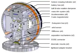 DANDE is spherical in nature so the projected cross-sectional area is held nearly constant. This leverages a simplified attitude subsystem design as opposed to a full three-axis stabilized system. Further spinning about orbit normal allows the accelerometer instrument, located so the spin-axis is perpendicular to the acceleration sense axis, to accept in a modulated acceleration profile.