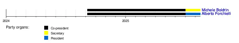 Members can discuss their ideas in seventeen thematic groups on Discord, as each group is responsible for drafting multiple position papers that will define the manifesto of the future party.[12] On 18 May 2025, with about 13,000 members, the deadline passed to register in order to have active and passive voting rights for the party’s founding Congress, which will take place from 10 to 12 October 2025.[13] All registered members will be able to run as delegates.[14] The delegates will attend a political training school in Urbino and then elect the 100 members of the Assembly, the Secretary, and the President.[15][16][17][18][19]