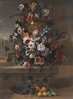 - ^ Nuemans, Egidius (Flanders, circa 1700), Still life of flowers in a terracotta vase and fruits before a Mediterranean park setting at Koller Auktionen