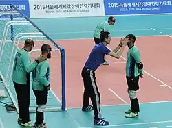 ![]() Egypt men's goalball team. Goalball at the IBSA World Games, Seoul, South Korea (May 2015). | |