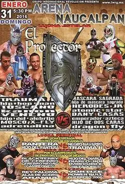 Lucha Libre has a tradition for a tournament where a rookie, or novato, would be teamed up with an experienced veteran wrestler for a tag team tournament in the hopes of giving the Novato a chance to show case their talent and move up the ranks. Consejo Mundial de Lucha Libre has held a Torneo Gran Alternativa ("Great Alternative Tournament") almost every year since 1994, but the concept predates the creation of the Gran Alternativa.[1] The Mexican professional wrestling company International Wrestling Revolution Group (IWRG; at times referred to as Grupo Internacional Revolución in Mexico) started their own annual rookie/veteran tournament in 2010.[2] The first two tournaments were called Torneo Relampago de Proyeccion a Nuevas Promesas de la Lucha Libre (Spanish for "Projecting a new promise lightning tournament") but would be renamed the El Protector tournament in 2012.[2][3][4] The El Protector shows, as well as the majority of the IWRG shows in general, are held in "Arena Naucalpan", owned by the promoters of IWRG and their main arena.[2][3][4][5][6][7] The 2016 El Protector show was the seventh time that IWRG promoted a show around the rookie/veteran tournament, with the name changing to El Protector in 2012 and onwards.