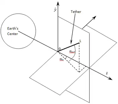 Realistically, the transverse electrodynamic forces cause the tether to bow and to swing away from the local vertical. Gravity gradient forces then produce a restoring force that pulls the tether back towards the local vertical; however, this results in a pendulum-like motion (Gravity gradient forces also result in pendulous motions without ED forces). The B direction changes as the tether orbits the Earth, and thus the direction and magnitude of the ED forces also change. This pendulum motion can develop into complex librations in both the in-plane and out-of-plane directions. Then, due to coupling between the in-plane motion and longitudinal elastic oscillations, as well as coupling between in-plane and out-of-plane motions, an electrodynamic tether operated at a constant current can continually add energy to the libration motions. This effect then has a chance to cause the libration amplitudes to grow and eventually cause wild oscillations, including one such as the 'skip-rope effect',[69] but that is beyond the scope of this derivation. In a non-rotating EDT system (A rotating system, called Momentum Exchange Electrodynamic Reboost [MXER]), the tether is predominantly in the z-direction due to the natural gravity gradient alignment with the Earth.