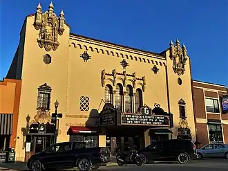 The Granada Theatre was constructed in 1929 at a cost of $350,000 ($6.41 million in 2024 dollars[2]). The theatre was dedicated on October 3, 1929, in a speech by “The Sage of Emporia,” William Allen White. During its early years, the theatre attracted many famous performers. In addition to screening movies, it was used for everything from beauty contests to traveling vaudeville acts. It was leased for many years to the Fox Corporation and became known as the Fox Theatre.[3]