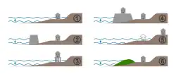 In the United Kingdom, the main reason for managed realignment is to improve coastal stability, essentially replacing artificial 'hard' coastal defences with natural 'soft' coastal landforms.[11] According to University of Southampton researchers Matthew M. Linham and Robert J. Nicholls, "one of the biggest drawbacks of managed realignment is that the option requires land to be yielded to the sea."[12] One of its benefits is that it can help protect land further inland by creating natural spaces that act as buffers to absorb water or dampen the force of waves.