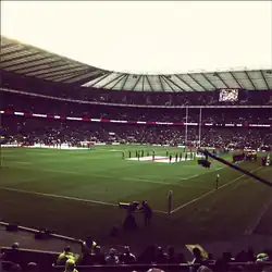 Although England have played home matches almost exclusively at Twickenham since 1910, they have occasionally used alternative English venues. England home matches have been hosted at Leicester's Welford Road (1923), London's Wembley Stadium (1992), Old Trafford (1997 and 2009), Huddersfield's McAlpine Stadium (twice in 1998),[74] Manchester's Etihad Stadium (2015), and St James' Park in Newcastle upon Tyne (2019).