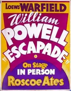 Escapade is a 1935 romantic comedy film starring William Powell and Luise Rainer. It is a remake of Maskerade (1934).