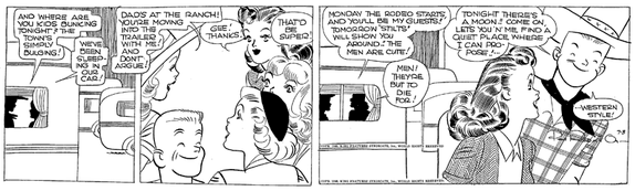 Launched as a single panel during December 1925, it originally offered tips to teenagers on manners, etiquette and the social graces. Robinson, however, saw a narrative potential that went beyond the initial format, devising a strip of wholesome humor that maintained a readership over five decades. Drawing with a polished, clean-line style, he jettisoned the teen-tips to expand his teenage characters into a daily strip and Sunday page about energetic Etta Kett and her middle-class family and friends in a suburban setting.