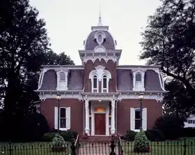 Evans House is a historic home located at Salem, Virginia. It was built in 1882, and is a 1+1⁄2-story, L-shaped, French Empire style brick dwelling. It features two concavely cut intersecting mansard roofs which are pierced by two paneled interior chimneys with corbeled caps. The front facade is symmetrically divided by a two-story projecting central pavilion supported by a bracketed cornice and topped with a convexly rendered mansard roof.[3]