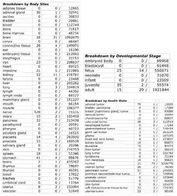The data from the figure below indicates that FAM149A is highly expressed in the brain, nerves, pancreas, adrenal gland, and kidney. There is no expression in the heart. From the information in the second table, common complications involving FAM149A expression include adrenal tumors, pancreatic tumors, colorectal tumors, and ovarian tumors.[15]