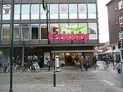 The first Kvickly store was opened by FDB in Denmark in 1961.[3][27] In Denmark, the sister chain remains Kvickly, which has a large selection of items, and were in 2010 named by the Danish Ministry of Health as the easiest place in Denmark to buy healthy food. Kvickly's headquarters are in Albertslund, and it has 81 stores.[27]
