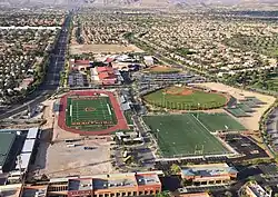 During the COVID-19 pandemic in 2020, the school's graduation was at the Las Vegas Motor Speedway and students took a lap after receiving their diplomas.[4][5] In December 2020, the school broke ground on a new $3.4 million dollar tennis complex on campus.[6]