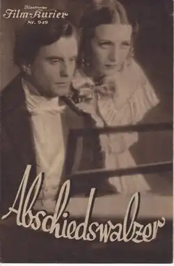 Farewell Waltz (German: Abschiedswalzer) is a 1934 German historical musical drama film directed by Géza von Bolváry and starring Wolfgang Liebeneiner, Richard Romanowsky and Hanna Waag.[1] It is based on the life of the composer Frédéric Chopin.