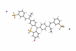 • CCN(CC1=CC(=CC=C1)S(=O)(=O)[O-])C2=CC=C(C=C2)C(=C3C=CC(=[N+](CC)CC4=CC(=CC=C4)S(=O)(=O)[O-])C=C3)C5=C(C=C(C=C5)O)S(=O)(=O)[O-].[Na+].[Na+]