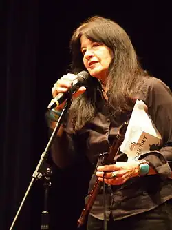 Though they lived in an era before an organised feminist movement, certain American poets have been lauded by feminist literary criticism as early examples of feminist writers. Feminist poetry in the United States is often thought of as beginning with Anne Bradstreet (1612–1672), the first poet of the New World. There were also, however, native poetic traditions before colonialism, which continue to the present day, and represent an important strand of American poetry. Native traditional verse has included "lyrics, chants, anecdotes, incantations, riddles, proverbs, and legends."[15] While it is difficult to ascertain from these oral traditions whether the authors of early texts were male or female, precolonial native poetry certainly addresses issues relevant to women in a sensitive and positive way, for example the Seminole poem, 'Song for Bringing a Child Into the World.'[16] In fact, native poetry is a separate but relevant tradition in the United States; as poet Joy Harjo comments, "The literature of the aboriginal people of North America defines America. It is not exotic."[17] In the context of Canada, Anne Marie Dalton argues that at least some indigenous communities in North America (though not all) have lived by practicing ecofeminism with regard to women's roles, and the sustainability of the land.[18]