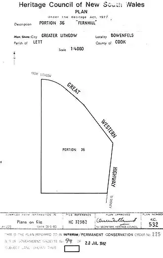 - ^ a b c d e f g h i j k l m "Fernhill". New South Wales State Heritage Register. Department of Planning & Environment. H00225. Retrieved 1 June 2018.