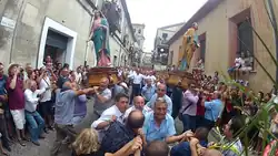 The current wooden statue used in the celebration was created in 1797 by Serrese sculptor Vincenzo Scrivo, discovered thanks to a restoration made in the 1980s. In 2006, another little restoration was made, and that year the feast began at the border with Stilo at Via Nazionale.