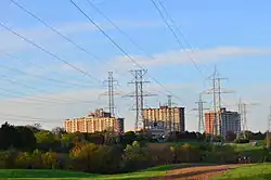 Finch Avenue was named after hotel owner John Finch, who operated John Finch's Hotel at the northeast corner of Finch Avenue and Yonge Street.[1] The road allowance was a concession road, and at one time, there were a number of older churches, schoolhouses, and cemeteries on each side of the road. In the 1950s, Ontario Hydro built a series of transmission lines around Toronto, and paralleled Finch from Highway 400 eastward into Pickering. A compressed natural gas pipeline also follows this routing.