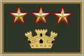 | Rank | English | Epaulette | Chest badge for operational uniform | Wrist badge | Fregio for cap | NATO Code equivalent |