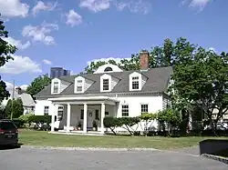 Adjacent to the church building is the Pintard House, one of New Rochelle's oldest remaining houses. It was constructed in part by Alexander Allaire sometime before 1710. In 1765 it became the home of a prominent New York City merchant named Pierre Vallade who came to New Rochelle on his retirement. After Vallade died in 1770, his widow married Lewis Pintard, whose name came to be associated with the house. Pintard was a local merchant and Revolutionary War patriot who was appointed by the Continental Congress to provide assistance to American prisoners held in the City of New York during British control. The Pintard House was moved to its current location in 1928.[1][3][4]