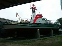 The decommissioned lifeboat Paul Denker, the first all-aluminium craft built for the German Maritime Search and Rescue Service, is on display in the courtyard between the main building and the extension. She was retired in July 2005.
