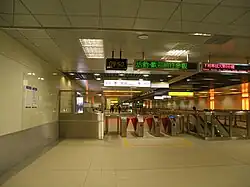 The station is a two-level, underground station with an island platform and three exits.[2] The station is 256 meters long and is located at the intersection of Jhongshan E. Rd. and Ren-ai Rd.[3]