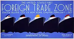1937 poster celebrating the United States' first foreign trade zone, Staten Island