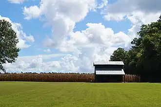 Foscue and Simmons Plantations, also known as Foscue Plantation, is a historic plantation house and adjoining farm complexes and national historic district located near Pollocksville, Jones County, North Carolina. The district encompasses seven contributing buildings, four contributing sites, one contributing structure, and one contributing object. The Federal style Foscue Plantation House was built about 1821-1825 and is separately listed. Among the other contributing resources are the farm landscape, Foscue Cemetery (1849-1918), Brick Vault Site (1814-1853), four tobacco barns, Marl Pits/Ponds (c. 1940), Italianate style Simmons Cottage (c. 1870–1878), Simmons Tenant House #1 (c. 1920–1940), Marl Dredger (c. 1940), and bungalow style Christopher Stephens Simmons House (c. 1918–1920).[2]