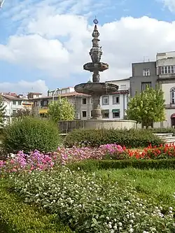 The ornate fountain of Campo das Hortas in front of the Residence Cunhas Reis | |