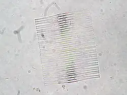 Fragilaria is a genus of freshwater and saltwater diatoms. It is usually a colonial diatom, forming filaments of cells mechanically joined by protrusions on the face and in the center of their valves. The individual diatoms appear swollen in their centers where they are joined to the colonial ribbon.[1] The genus grows as both plankton and benthic species, free living in colonies or as epiphytes. Some species are bloom forming diatoms in eutrophic lakes. The type species is Fragilaria pectinalis Lyngbye from designating a lectotype from Conferva pectinalis O.F.Müller.[2] The taxonomy of the genus is still uncertain.[3]