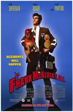 Frank McKlusky, C.I. is a 2002 comedy film directed by Arlene Sanford and written by Mark Perez.[1][2][3][4] Dave Sheridan plays McKlusky, a safety-conscious insurance claims investigator investigating the murder of his partner Jimmy, played by Kevin Farley. Randy Quaid and Dolly Parton play McKlusky's parents, “Madman” McKlusky, Frank's daredevil father, and Edith, Frank's over-protective mother.