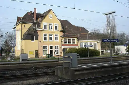 Frankfurt-Frankfurter Berg station (German: Bahnhof Frankfurt-Frankfurter Berg) is a railway station located in the Frankfurter Berg district of Frankfurt, Germany. The station is classified by Deutsche Bahn as a category 5 station[1] and part of the Main–Weser Railway. The station was called Bonames until 1996.
