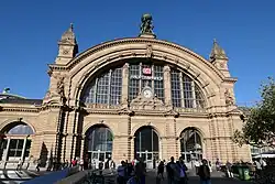 Frankfurt (Main) Hauptbahnhof, also called Frankfurt Central Station and Frankfurt Main Station, is the busiest train station in the German state of Hesse.[2] Due to its location near the middle of Germany and usage as a transport hub for long and short distance travelling, Deutsche Bahn refers to it as the most important station in Germany.