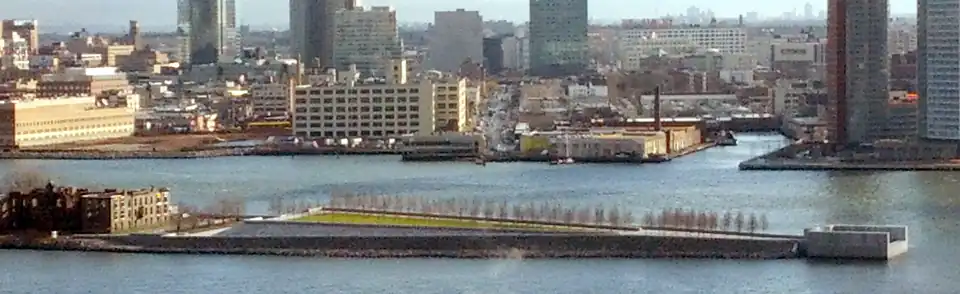 An exhibition at Cooper Union in 2005 brought additional attention and helped to advance the project.[12] In 2006, ENYA (Emerging New York Architects) made the island's abandoned southern end the subject of one of its annual competitions. Groundbreaking took place in 2010.[13] However, the park was tied up in litigation during its construction.[5]