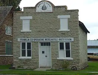 The Franklin Cooperative Mercantile Institution, which was built in 1869, was a cooperative general store organized as part of a wider Mormon movement. The movement, which was centrally led by Mormon authorities, saw the opening of local general stores which received their goods both from wholesalers and community residents. The store building is a stone Greek Revival structure; while stone was a common building material during the Mormon settlement of Idaho, few of Franklin's early stone buildings survive. The cooperative store operated until the 1880s, when the cooperative movement faded and it was bought by a single owner. In 1923, the building became one of Idaho's first history museums and was the predecessor of the Relic Hall.[4]