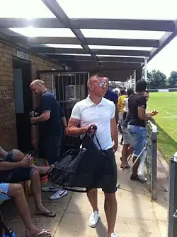 Freddy Eastwood arriving at Burroughs Park ahead of Southend United's pre-season friendly against Great Wakering Rovers in 2013.