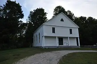 The Free Baptist Church, also known as the Penley Corner Church is a historic church on Riverside Drive in Auburn, Maine. Built in 1833, the building's interior was extensively redecorated in the late 19th century with Queen Anne stained glass, stencilwork, and multicolored painting. Its primarily for the well-preserved interior artwork that this building was listed on the National Register of Historic Places in 1989.[1]