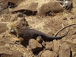 The Galápagos land iguana (Conolophus subcristatus) is a very large species of lizard in the family Iguanidae, and one of three species of the genus Conolophus. It is endemic to the Galápagos Islands off of Ecuador's Pacific coast, inhabiting the dry lowlands of Fernandina, Isabela, Santa Cruz, North Seymour, Baltra, and South Plaza islands.[2][5][6]