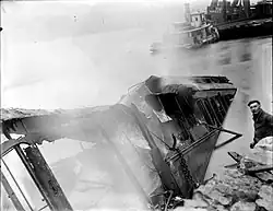 The Garrison train crash occurred on October 24, 1897, in Garrison, New York, at approximately 5:47 am,[1] when train No. 46 of the New York Central & Hudson River Railroad derailed near King's Dock of the Hudson River division, about one and three-quarters miles south of Garrison. All but one of the 19 fatalities drowned when the embankment gave way, plunging the train into the Hudson River.[2][3] Witnesses described feeling between one and three "thuds" before three of the five sleeper cars fell into the river.[2] Several witnesses described seeing a "hole" in the trackbed after the accident, however, the cause of this was not determined.[2] Early speculation blamed a large explosion of dynamite as the cause of the train's derailment.[4] Two weeks previously, the same train had almost derailed near the same spot when a two-ton boulder was found on the tracks, with some believing it had been deliberately placed.[4]